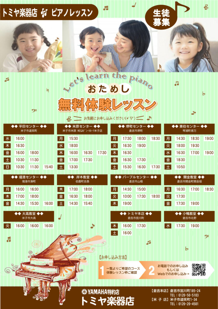 3月 ピアノ体験レッスン スケジュール♪ 【鳥取県中西部エリア】